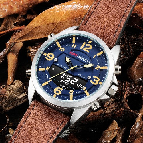 KAT-WACH KT1818 Fashion Top Brand Men Watch Leather 50M Waterproof Quartz Wristwatches Men's LED Military Sport Watch For Men