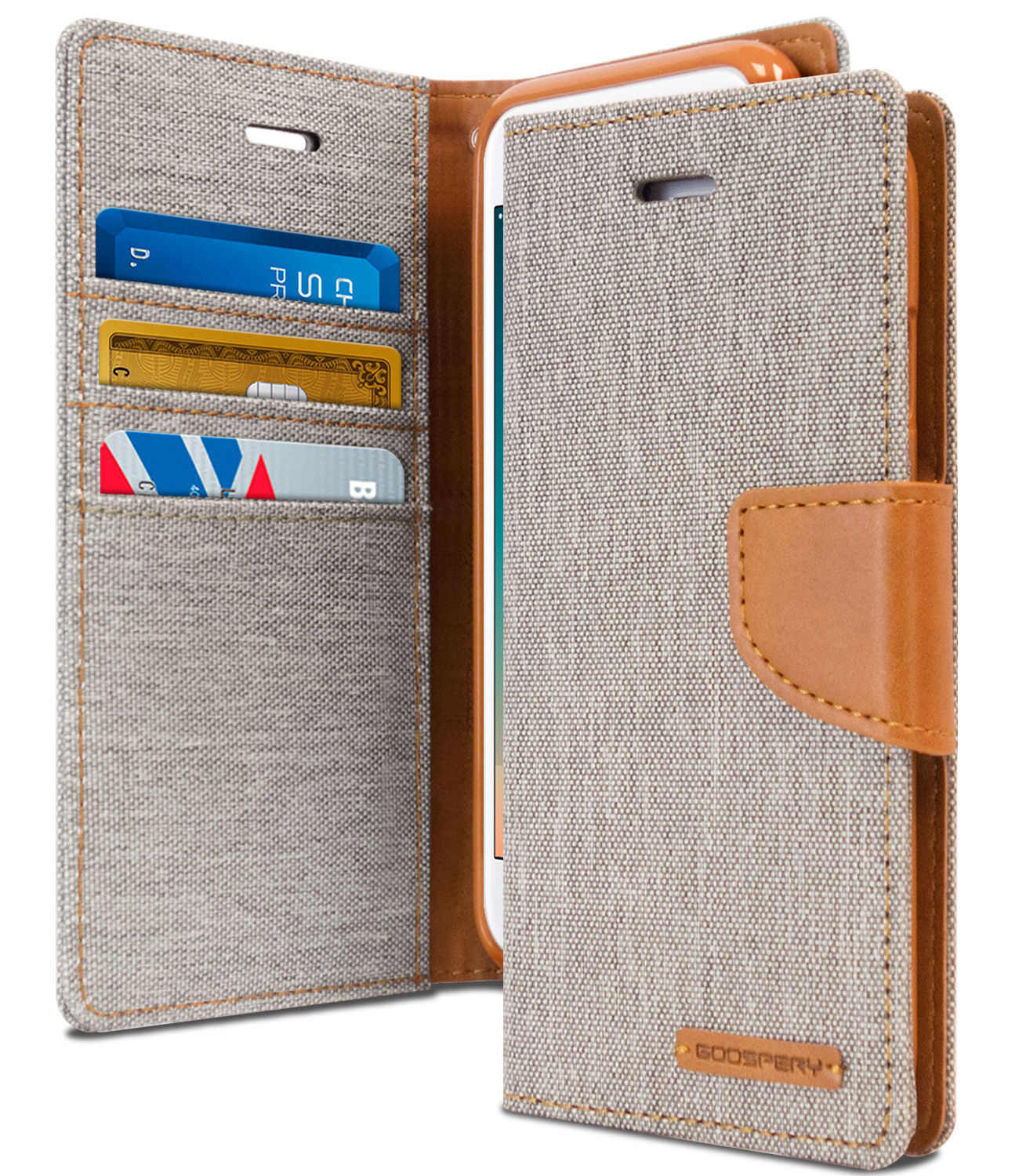 Canvas Flip Wallet Grey Cover For Samsung J2 Pro, J2 Core, J3 Pro, J4, J4 Plus, J5 Pro, J6, J6 Plus, J7 Pro, J8