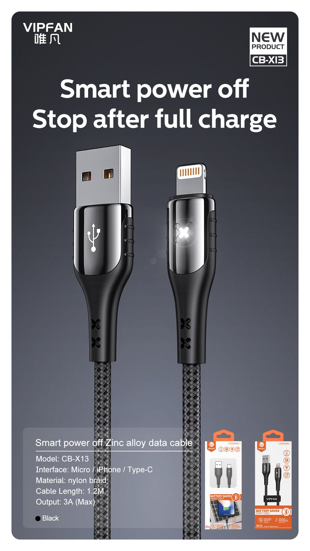 VIPFAN Battery Saver Smart Cable (X13)
