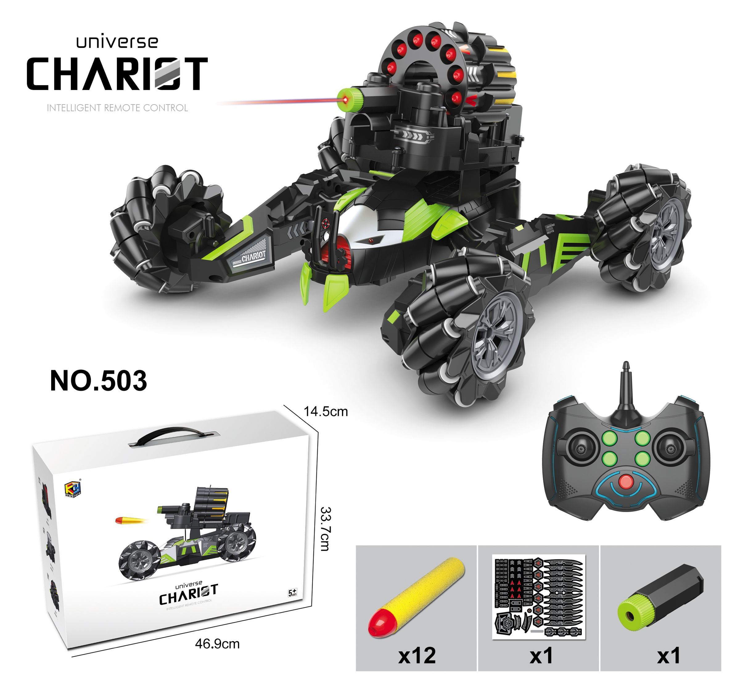 The tank fires Universe Chariot 360 degrees with gesture control 503 with dual remote control. This machine can be controlled by gestures using a special bracelet or a classic remote control.