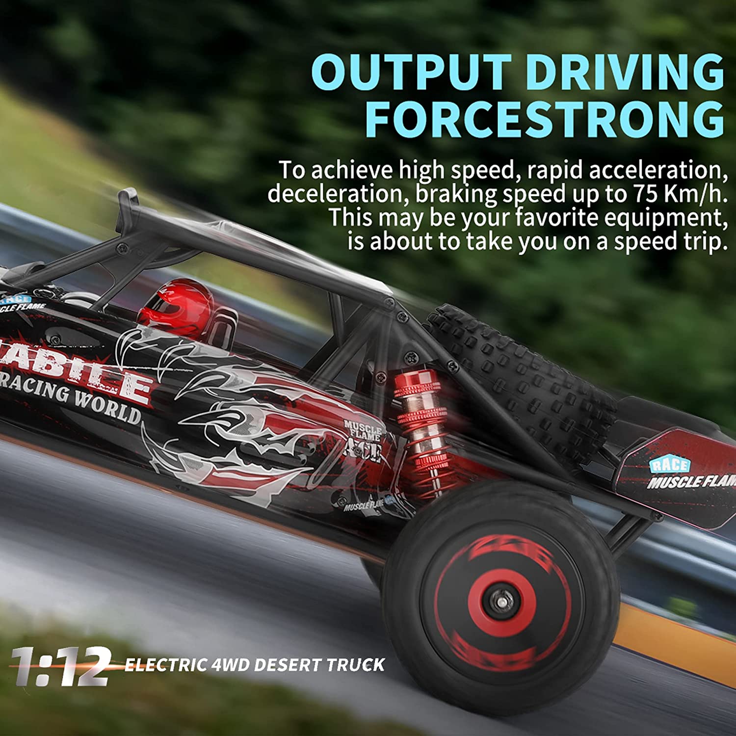 GoolRC WLtoys 124016 RC Car, 1:12 Scale Remote Control Car, 4WD 75km/h High Speed Racing Car, 2.4GHz All Terrain Off Road RC Truck RTR with Brushless Motor and Metal Chassis for Kids Adults
