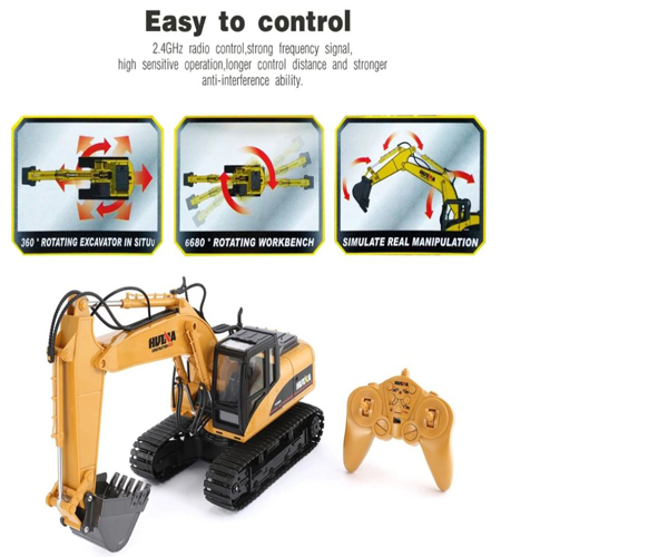 15-Channel 2.4G Excavator is a 1:14 scale model of a real excavator that works just like the real thing.