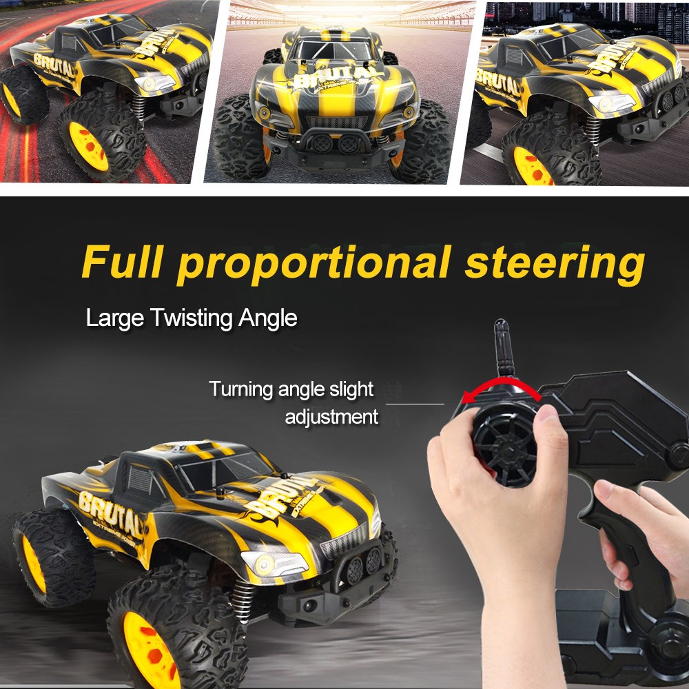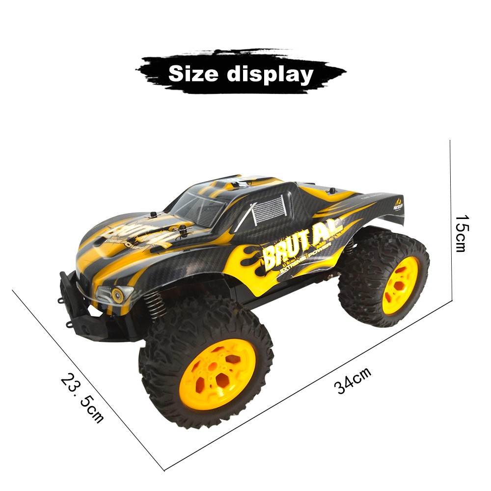 -2.4GHz Synchronous remote control system ready to run. Full scale proportion 1/12 25 km/h monster truck at high speed.