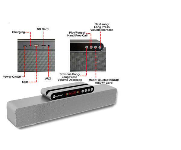 ■ multiple functions: wireless play/ FM radio/ USB drive/ hands free call/ TF card /aux input/ TWS connection/ led display