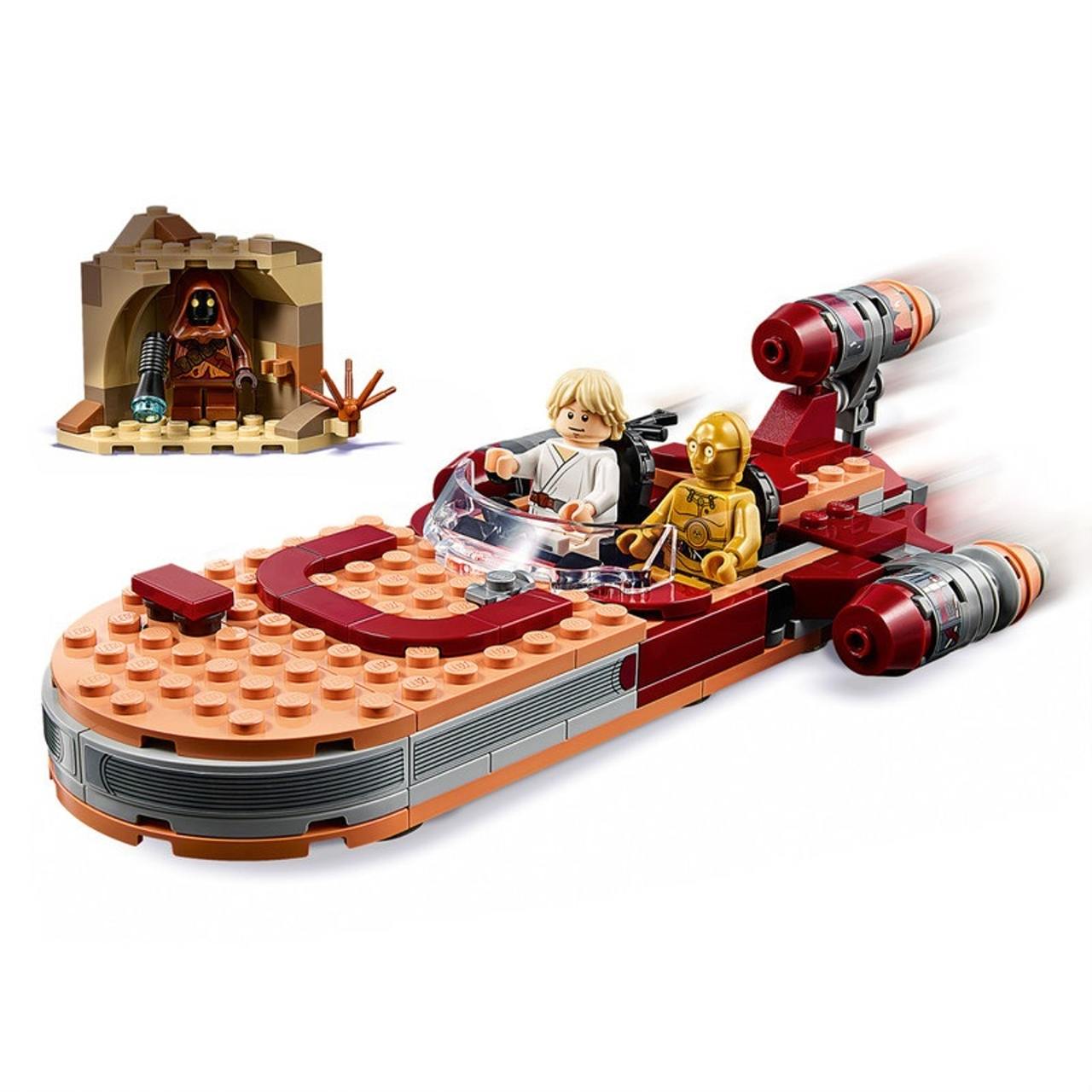 - Zoom! Let young Jedi role-play as Luke Skywalker driving this new-for-January 2020 Star Wars X-34 landspeeder (75271), with cool details including a trunk for his macrobinoculars and a clip for his blaster rifle.