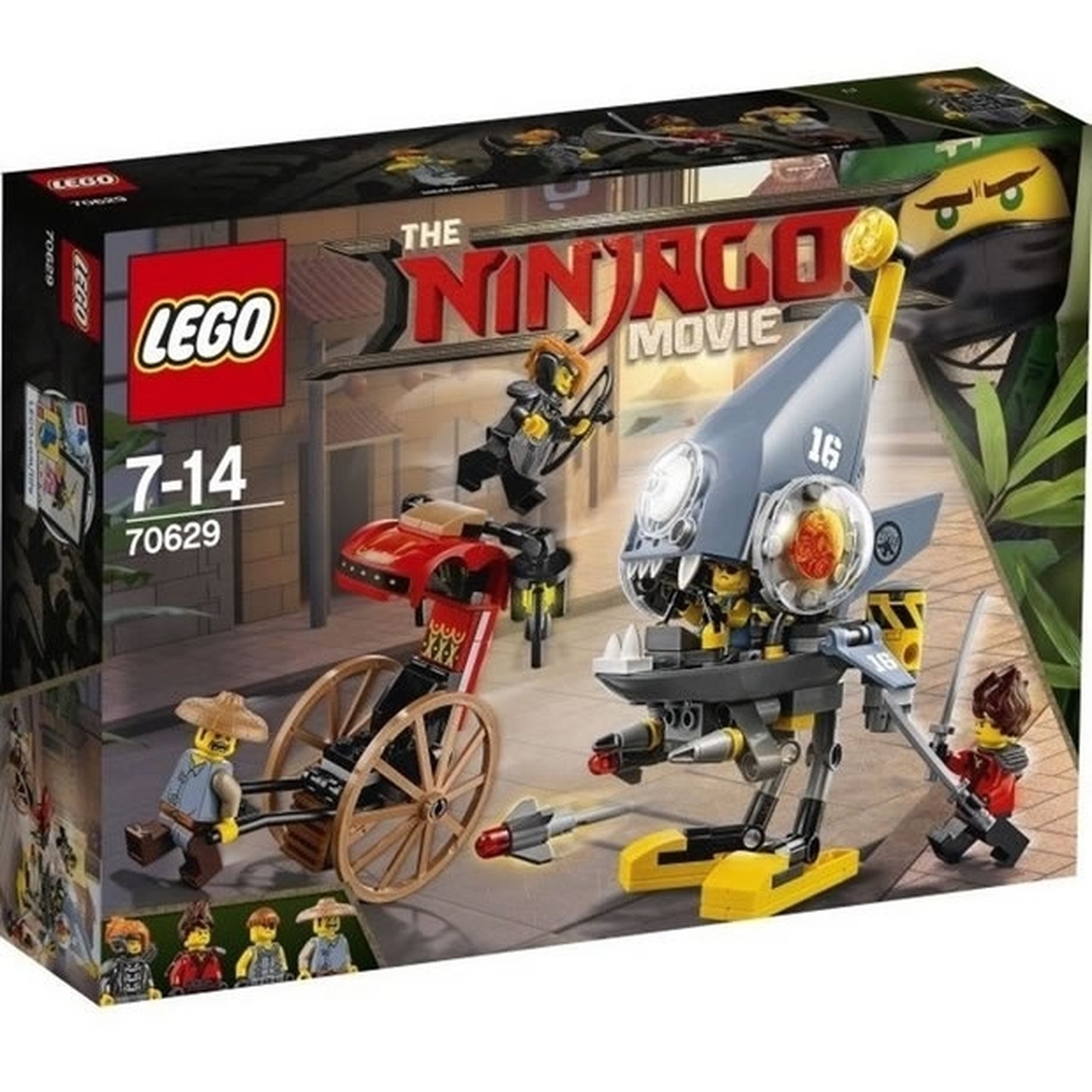 Play out an action-packed Piranha Mech pursuit of a rickshaw through NINJAGO® City with THE LEGO® NINJAGO MOVIE™ Piranha Attack set. The Piranha Mech features opening jaws with a minifigure cockpit inside, plus 2 flick missiles. This fun toy also includes 4 minifigures with assorted weapons to dial up the chase action.