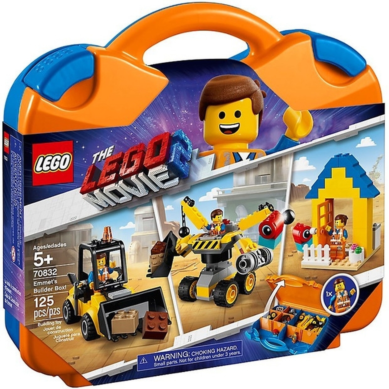 Open up a world of master-building adventures with THE LEGO MOVIE 2 70832 Emmet's Builder Box, featuring 3 buildable models-Emmets digger vehicle, house and construction mech…