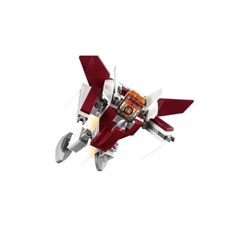 Get set for supersonic fun with the LEGO Creator 3in1 31086 Futuristic Flyer, featuring an awesome dark red and white color scheme, forward swept wings, tinted cockpit, fixed landing gear and a flaming jet engine. With this LEGO Creator 3in1 set you get 3 different build and play experiences. Build the Futuristic Flyer and then rebuild it into a Futuristic Spaceship toy or a Futuristic LEGO Robot with wings and backpack for more sci-fi fun.