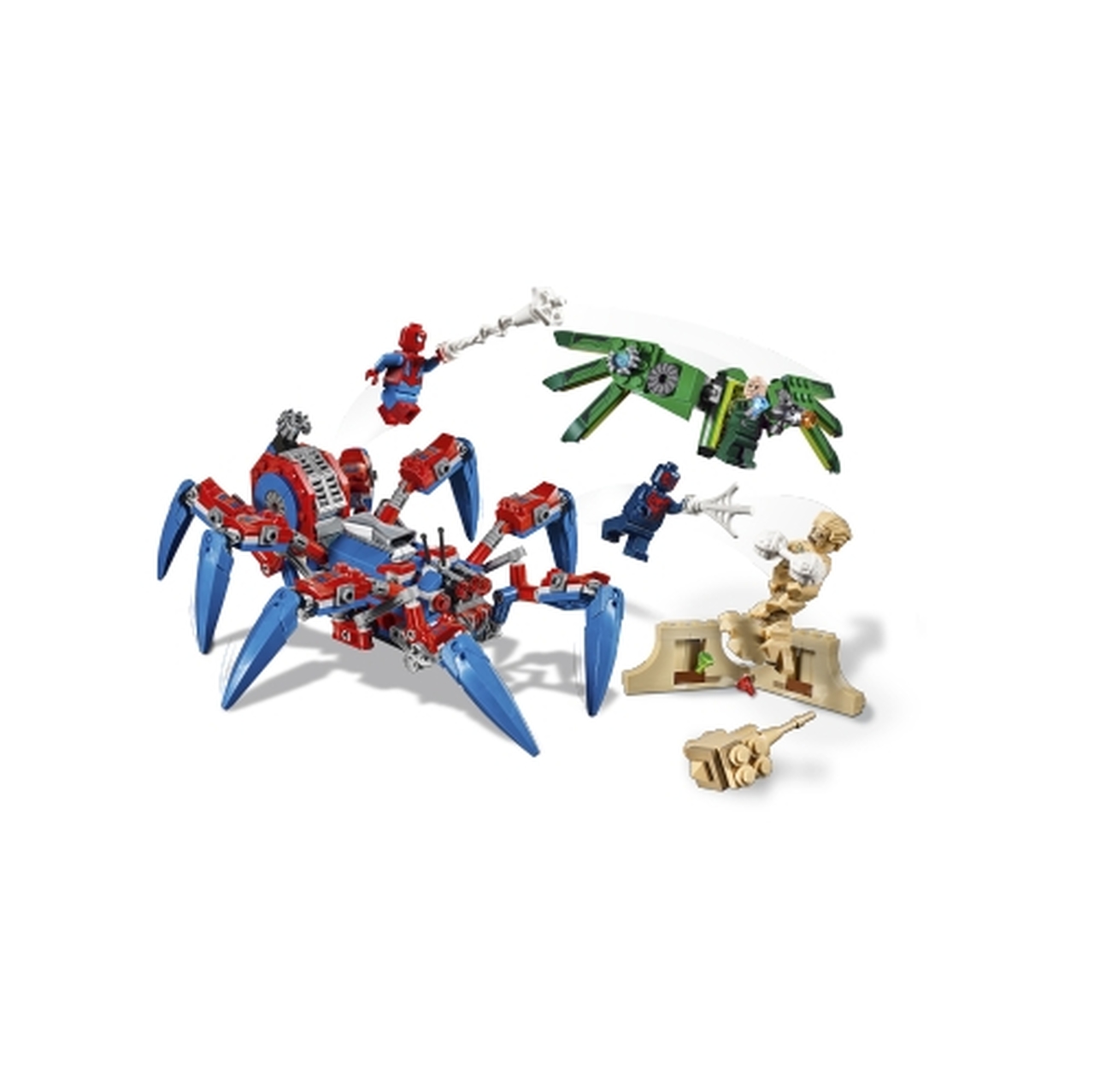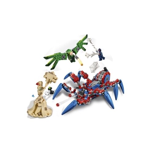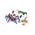 - Spider-Man's Spider Crawler features a minifigure cockpit, 8 crawling legs activated by model movement, 2 stud shooters, and a shooter to fire tech spider or web elements.