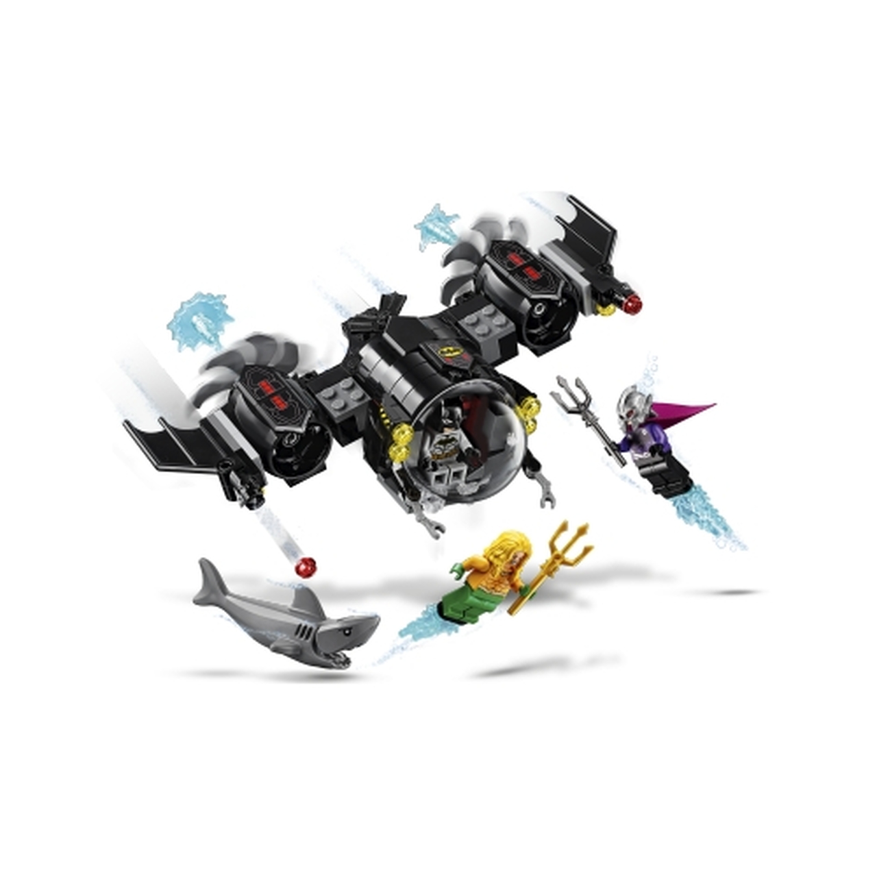 - Batman submarine features an opening bubble-shaped minifigure cockpit, adjustable claws, 360-degree rotating wings, 2 stud shooters, 2 rear rotating propellers and 2 detachable fins.
