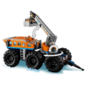 - Features a crane vehicle with rotating, articulated arm, hook, all-terrain wheels, large hauling platform, trailer, a mobile lab unit with radar dish and opening door, a mobile saw vehicle with articulated arm and rotating saw, plus a snow bike.