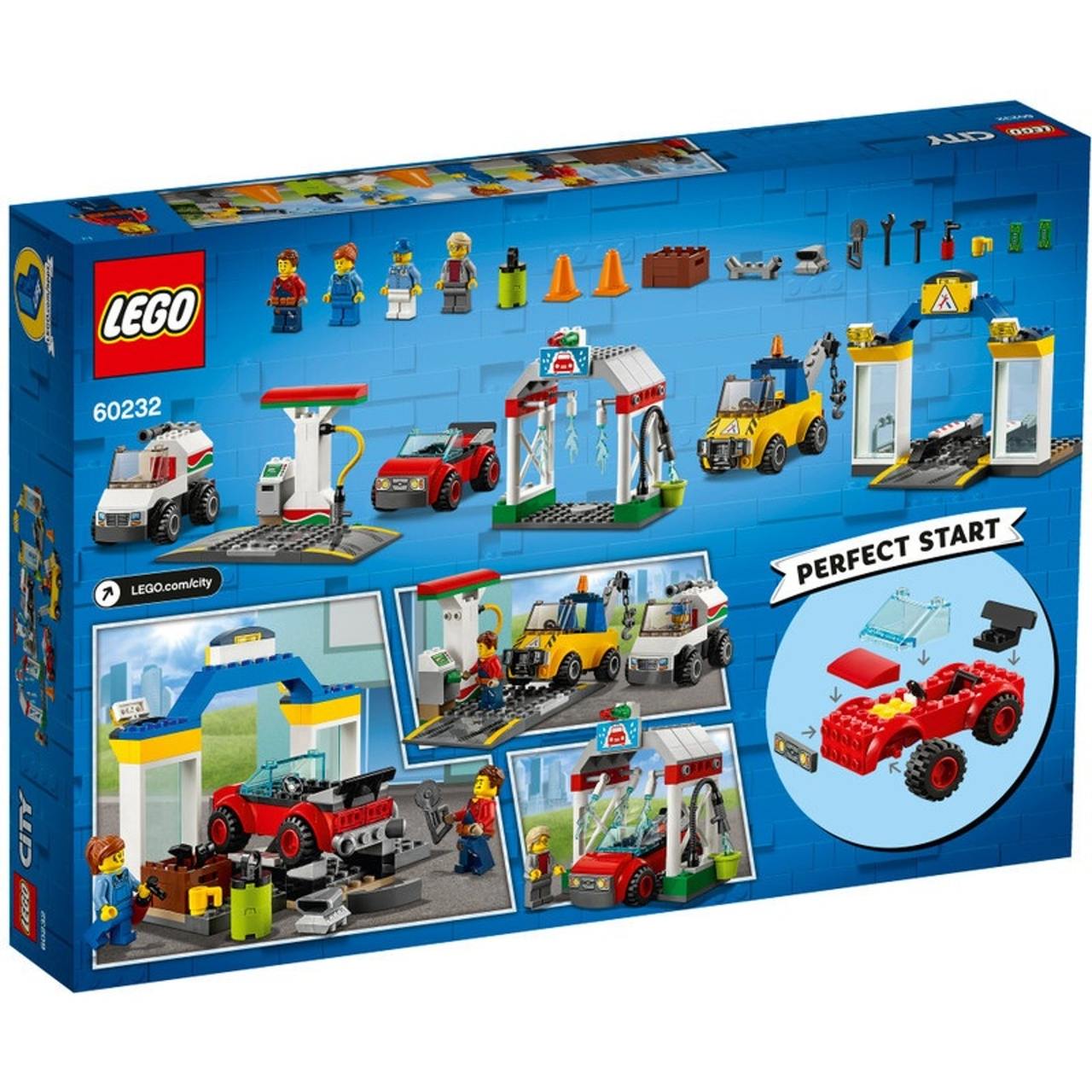 Give your young car mechanic a great start with this multi-vehicle set, inspired by the new-for-2019 LEGO City TV series.This LEGO 4+ toy set is specially designed to be fun and easy for preschoolers and youngsters, featuring a car wash building, plus a sports car, tow truck and gas tanker, garage and gas station pump stand with special Starter Brick chassis and bases that let even first-time builders experience the pride of constructing buildings, vehicles and more, all on their own.The included simple guide to build and play will also help your young creator understand the purpose of the building steps and grow their imagination and confidence for the perfect start to LEGO brick building in a familiar LEGO City setting.Then give your young LEGO builder an amazing building experience with Instructions PLUS, available in the LEGO Life app for smartphones and tablets.The easy-to-use, intuitive building instructions let them zoom, rotate and visualize their creation using the special ghost mode as they go.Instructions PLUS is also great for younger builders, guiding them through the building process for a greater sense of independence and achievement.This cool toy playset includes 4 minifigures.