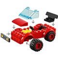 - This great construction toy also includes 3 vehicles: a red sports car with red wheels, yellow and blue tow truck with raising crane arm and a gas tanker with flexible hose.