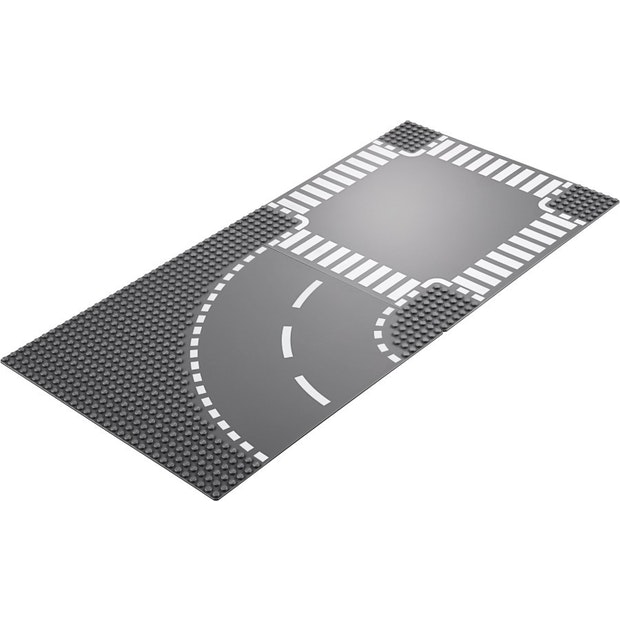 Build up your roads with LEGO® City 60237 Curve and Crossroad plates, to make hauling cargo or driving passengers around town even more entertaining. This construction toy set, including 1 curve road plate and 1 crossroad baseplate, is compatible with your existing LEGO City sets.