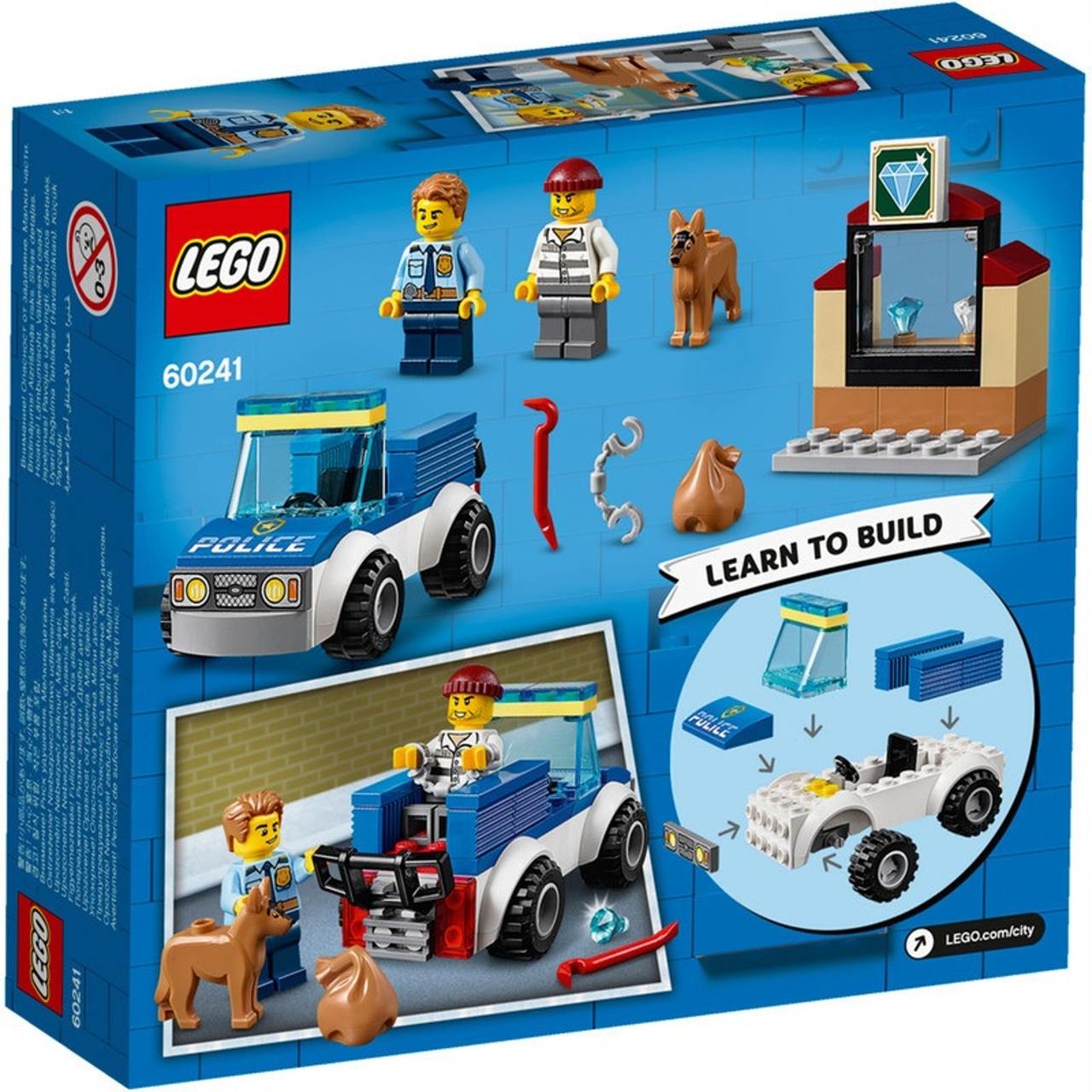 Youngsters love to role-play everyday heroes, and with this LEGO City Police Dog Unit (60241) set they can do just that! There's a cool toy police car with room for the police officer and his faithful police dog, a jewelry shop with gems, plus a crowbar-wielding crook. The perfect scenario for small crimefighters with big imaginations. Fun police playset for kids This 4+ toy playset includes a simple printed building guide and a special Starter Brick element so youngsters can take pride in constructing LEGO toys. And with the free LEGO Life app for smartphones and tablets, kids get Instructions PLUS - an interactive building guide with zoom and rotate viewing tools that really do turn LEGO building into child's play. LEGO City - Cool toys for kids With LEGO City police sets, kids get to immerse themselves in open-ended adventures and action-packed scenarios that reflect real-life situations. And, with a wide range of feature-rich buildings and vehicles, kids' imaginations are free to soar!