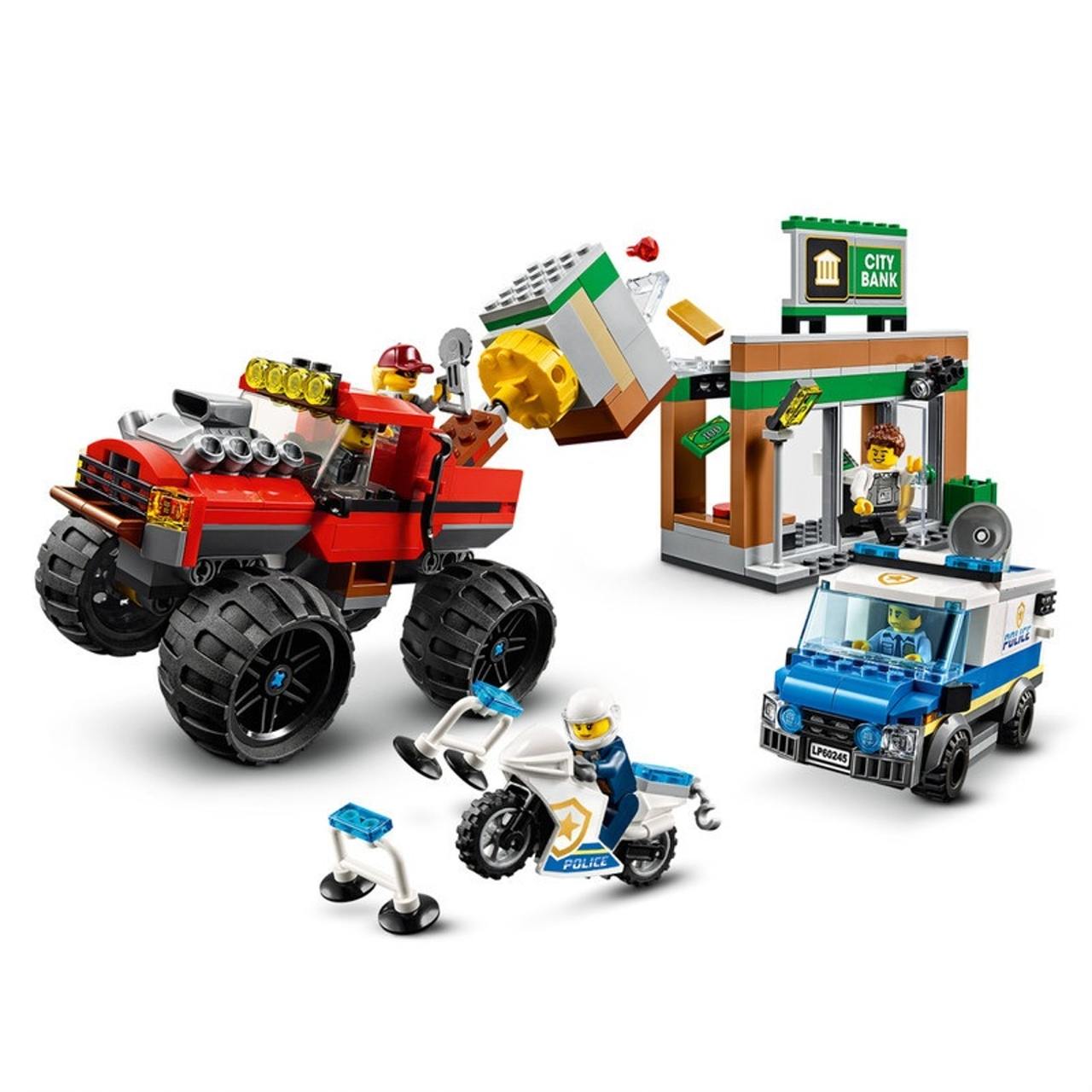 - The police surveillance van and bank building have detailed interiors, and kids can pull the safe from the bank wall with the monster truck's magnetic arm. This set can be combined with other original LEGO sets.