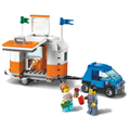- Comes with a toy garage, camping trailer and cool vehicles, including a tow truck, hot rod and rocket-powered motorbike, plus 7 minifigures, including LEGO City TV characters Tread Octane and Harl Hubbs.